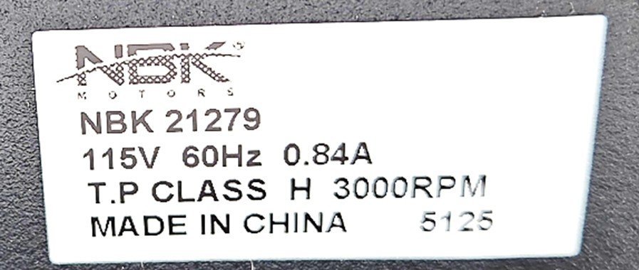 NBK-20051 EXHAUST BLOWER MOTOR, 115 VOLT, 0.98 AMPS, 3000 RPM